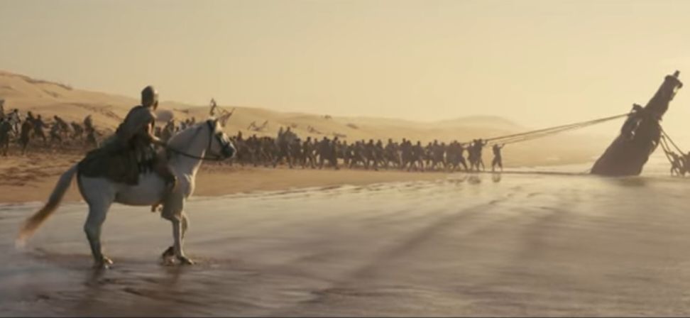 The teaser opens with a weathered and battle-worn Odysseus struggling to find his way home after the Trojan War. Shipwrecks, violent storms, and shadowy monsters stand in his path as he leads what remains of his army across land and sea. Nolan’s signature style is clear throughout — grand visuals, minimal dialogue, and an atmosphere heavy with tension.